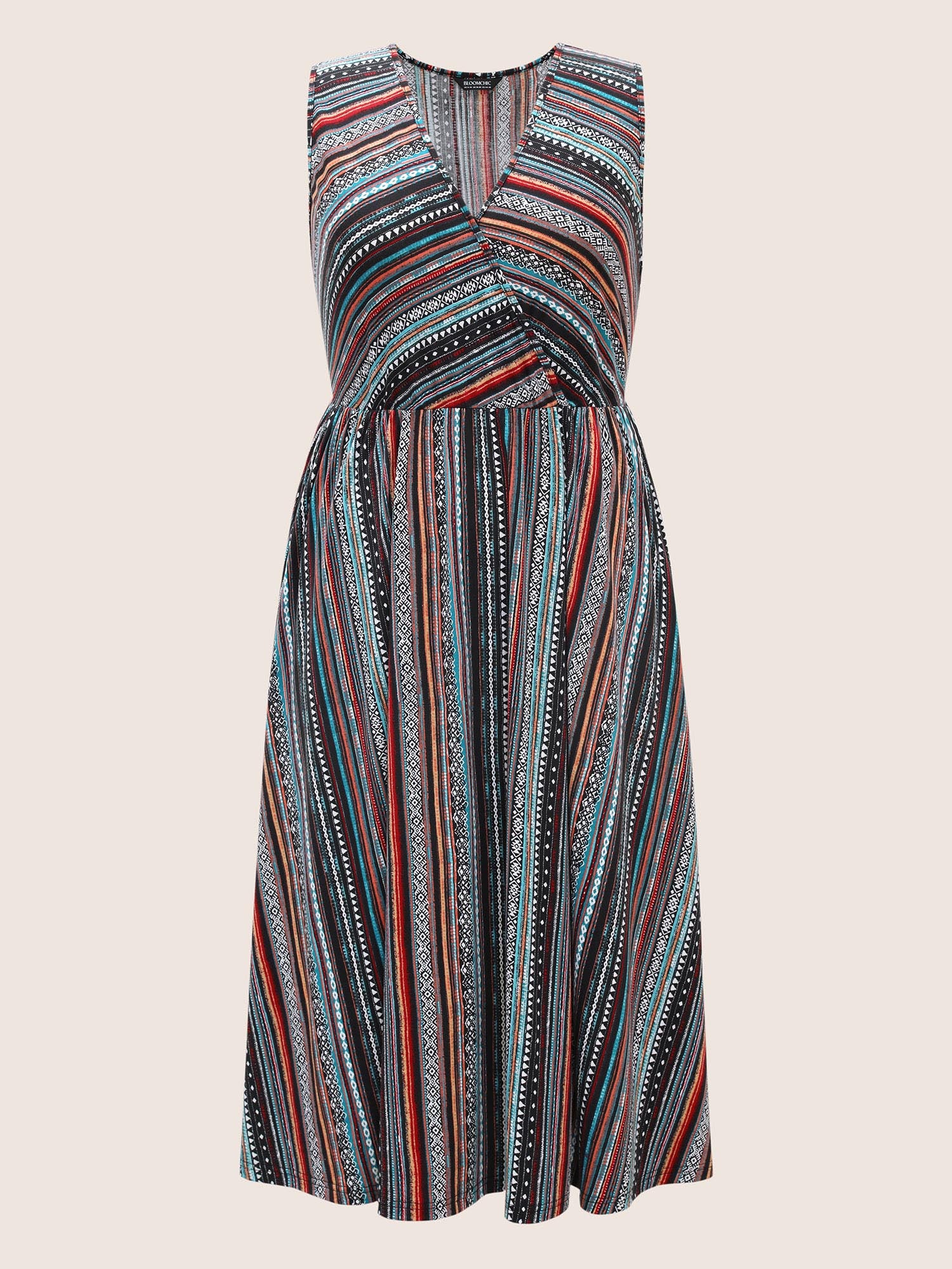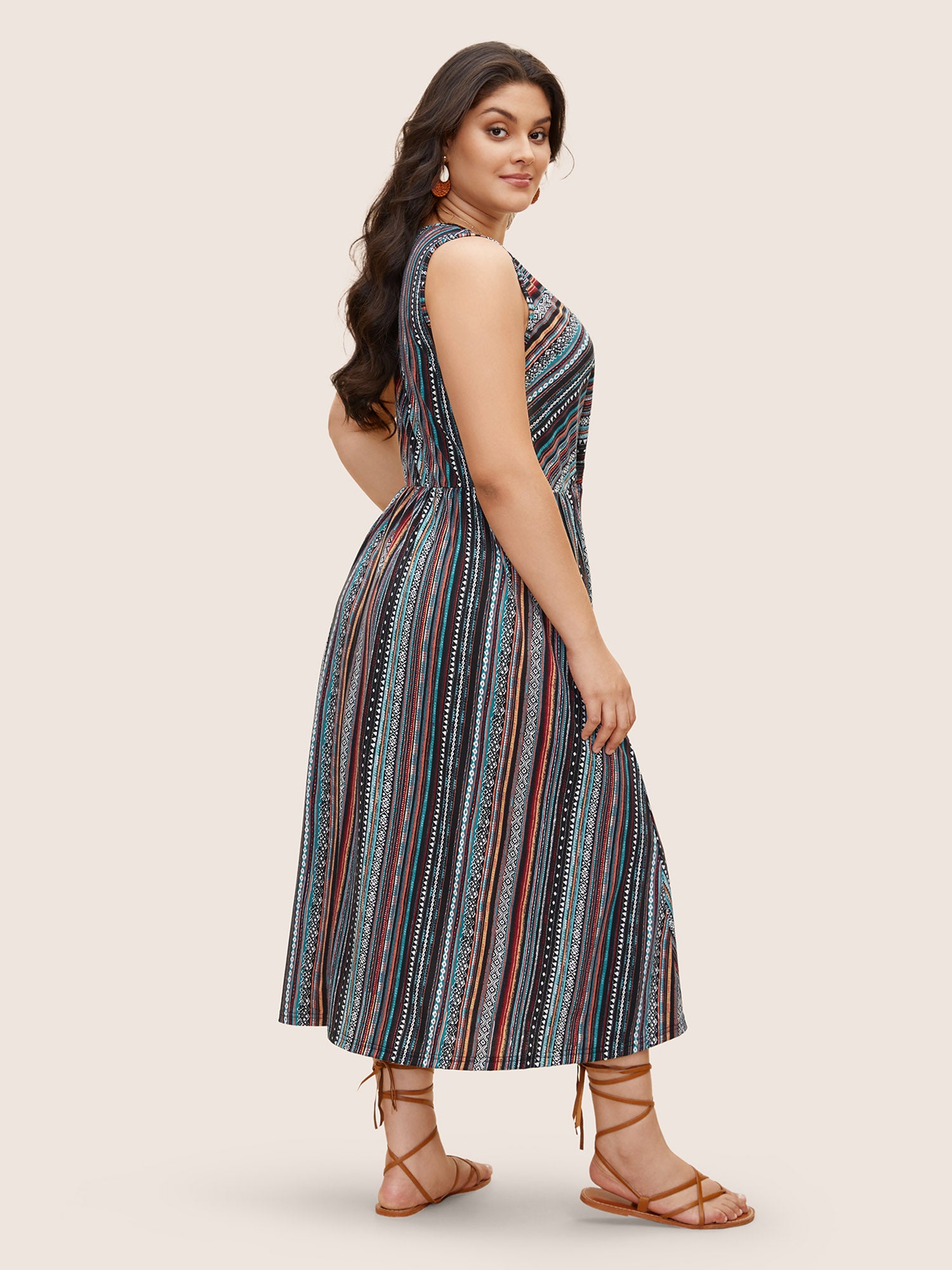 • Overlap Collar Bandana Striped Sleeveless Dress