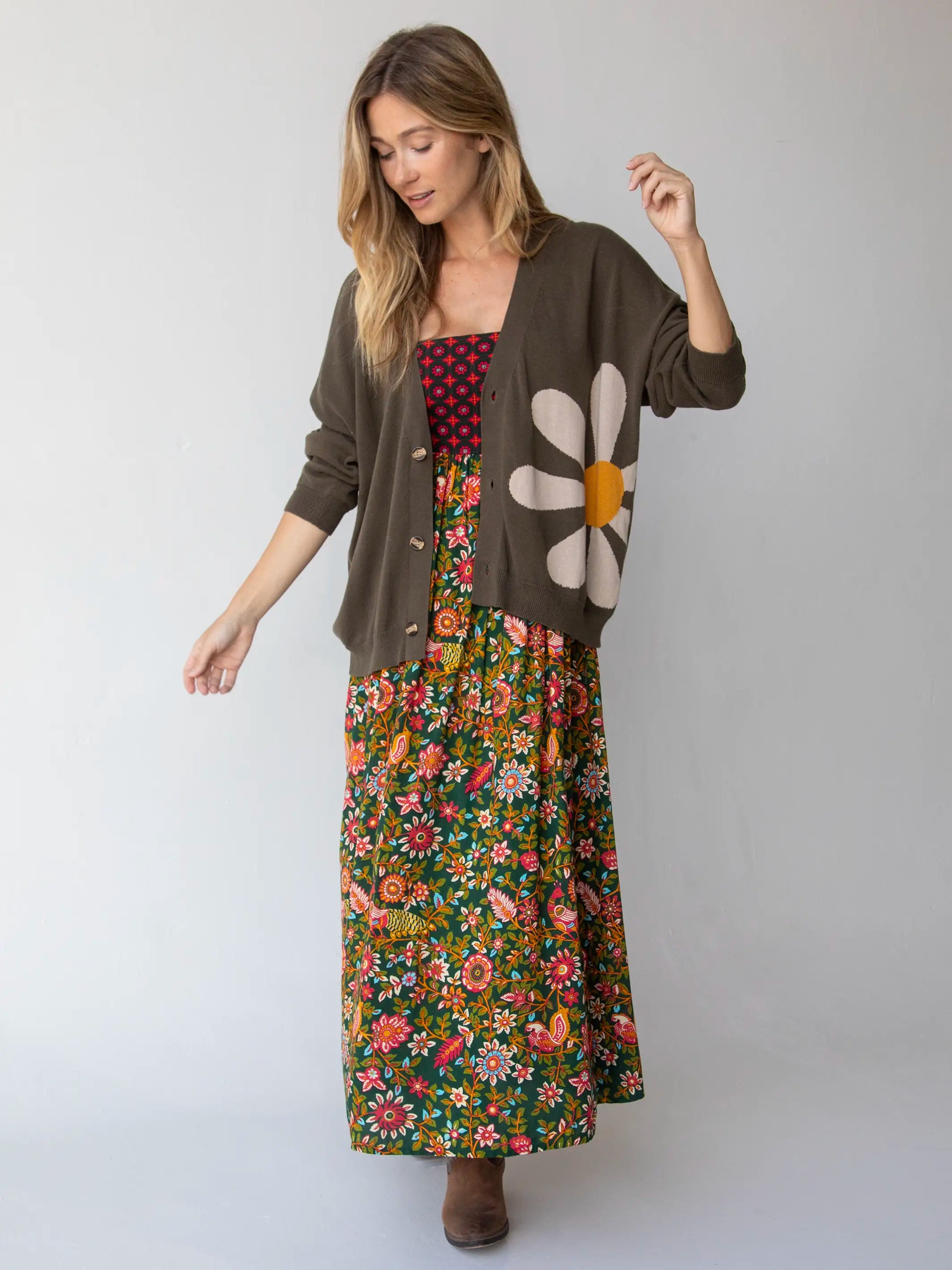• Live Happy Cotton Cardigan Sweater - Olive Daisy