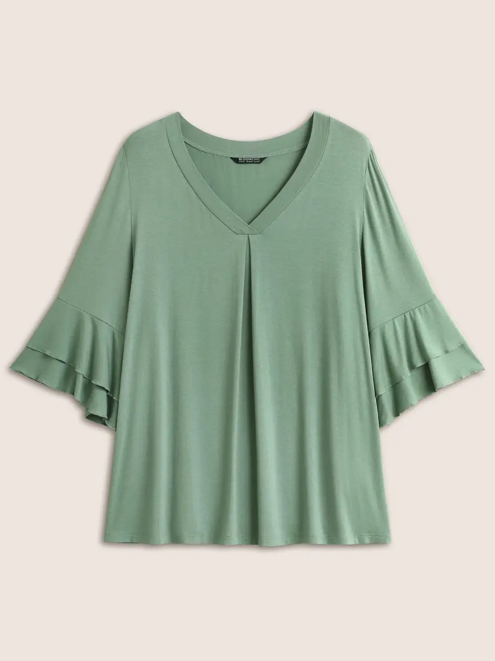 Supersoft Essentials Ruffle Layered Sleeve Pleated T-Shirt