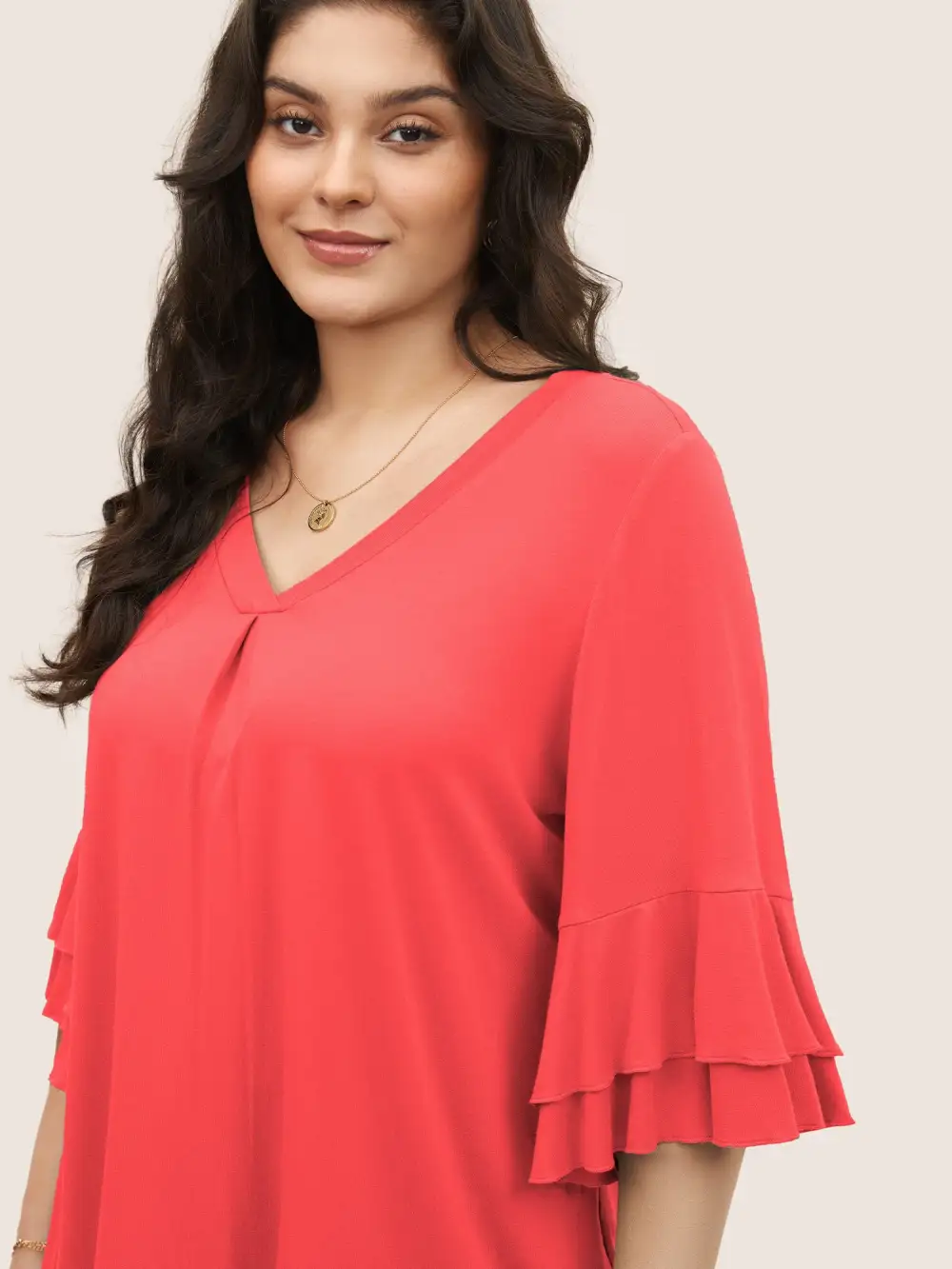 • Supersoft Essentials Ruffle Layered Sleeve Pleated T-Shirt