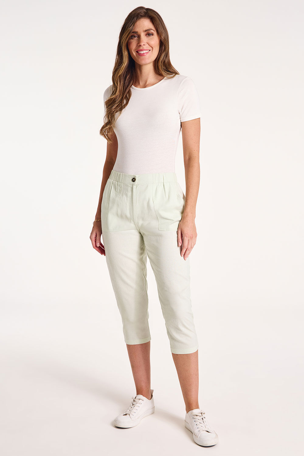 A must have style for every wardrobe, these gentle tapered leg cropped trousers in a beautiful soft touch linen will keep you on trend and comfortable. Team this versatile trouser with a t-shirt or blouse for a flawless day time look. Material: 78% Viscose, 22% Linen Product Care: Machine Washable Product Code: 9006027 Size & Fit